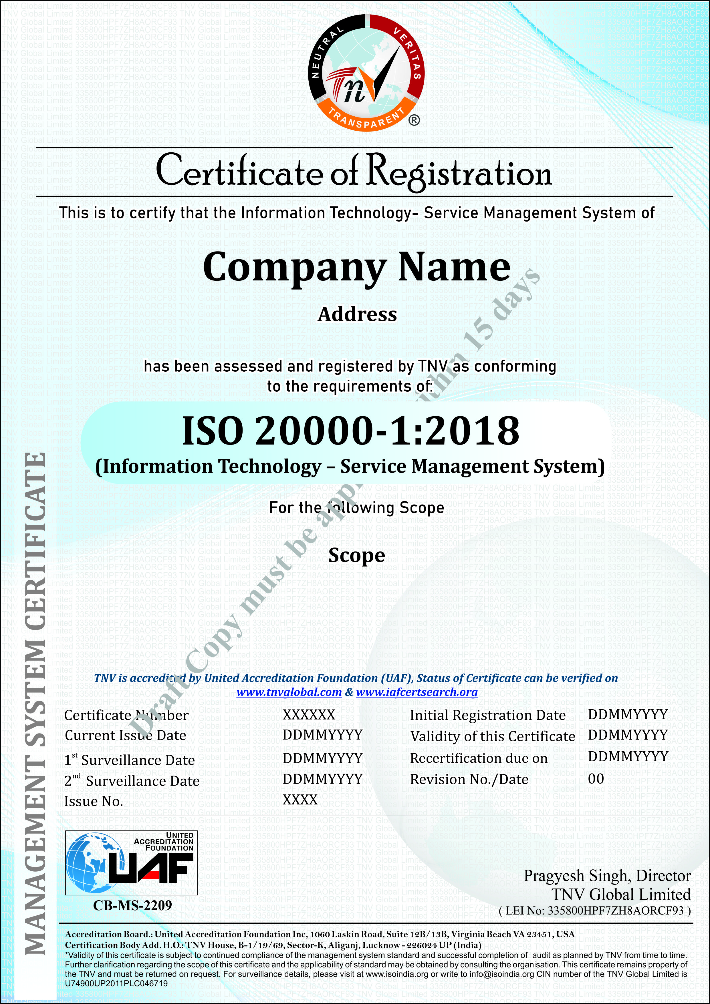 Sample Certificate of ISO 20000-1:2018